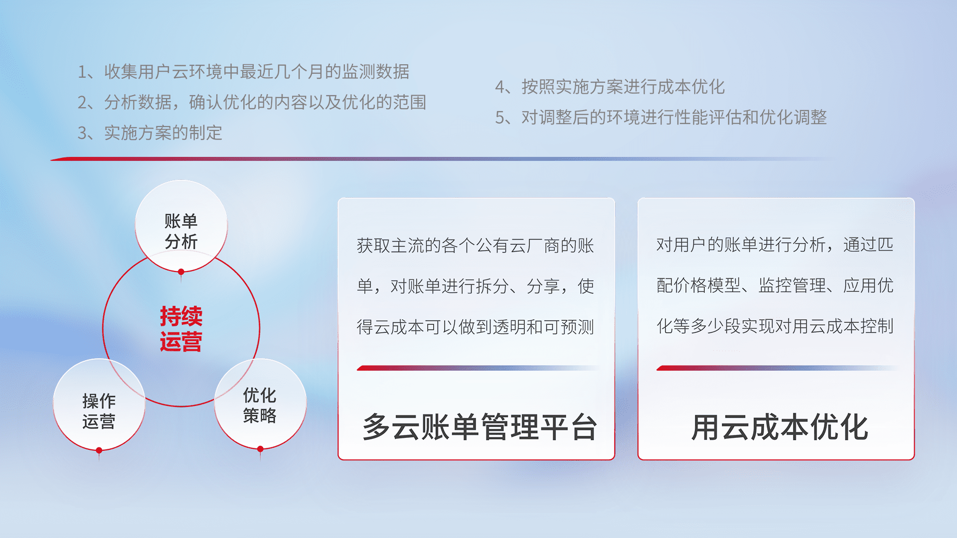 监控业务系统资源开销,,对资源的消耗精确计量,,,,实现费用的透明化管理,,不断提升资源使用率,,,,调整资源购买方式,,降低资源费用成本,,,,用云成本可预测、、、、用云费用可优化,,云资源配额有据可依。。